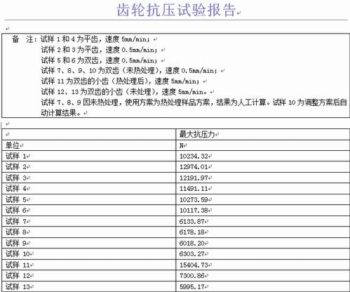 该客户是一家粉末冶金专业制造企业,该客户目前主要生产铁系、铜系、合金系等高精度含油轴承及以铁基、铜基、合金、不锈钢为原材料的高强度结构零件,其产品主要用于汽车、摩托车、家用电器、办公设备、电动工具、锁具及园林工具等多个行业。齿轮就是轮缘上有齿能连续啮合传递运动和动力的机械元件,齿轮是能互相啮合的有齿的机械零件,它在机械传动及整个机械领域中的应用极其广泛。齿轮及其齿轮产品是机械装备的重要基础件,绝大部分机械成套设备的主要传动部件都是齿轮传动。就目前的齿轮市场从规模和销售额等各方面因素来看,齿轮产业已然成为中国机械通用零部件基础件领域的“领军”级行业。中国已经成为名副其实的世界齿轮制造大国,市场发展前景广阔!此次该客户委托我司做了金属齿轮的抗压试验方案,如下的相关试验数据及参数是用我们三思泰捷的试验机设备试验得出的结果: